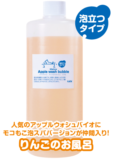 温浴にリンゴ酵素の入浴剤が入ります。リンゴ酵素の力でさらにしっかりクレンジングができます。 ¥1200